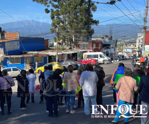 El bloqueo de la vialidad provocó afectaciones al tránsito vehicular y al transporte público en el primer cuadro de la ciudad, obligando a conductores a tomar rutas alternas.