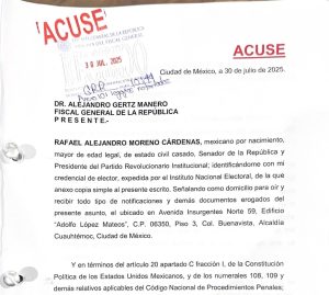 Ciudad de México.- El presidente nacional del Partido Revolucionario Institucional (PRI), Alejandro Moreno Cárdenas, anunció este martes que su partido interpondrá denuncias formales contra varios gobernadores y exfuncionarios vinculados al partido Morena, a quienes acusa de mantener presuntos nexos con el crimen organizado, así como de participar en actos de corrupción y extorsión.