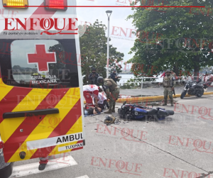 Debido a las lesiones sufridas, el motorista tuvo que ser trasladado al Hospital IMSS Bienestar para su atención médica, mientras que elementos de la Policía Estatal y personal de Marina acudieron para tomar conocimiento de lo sucedido.